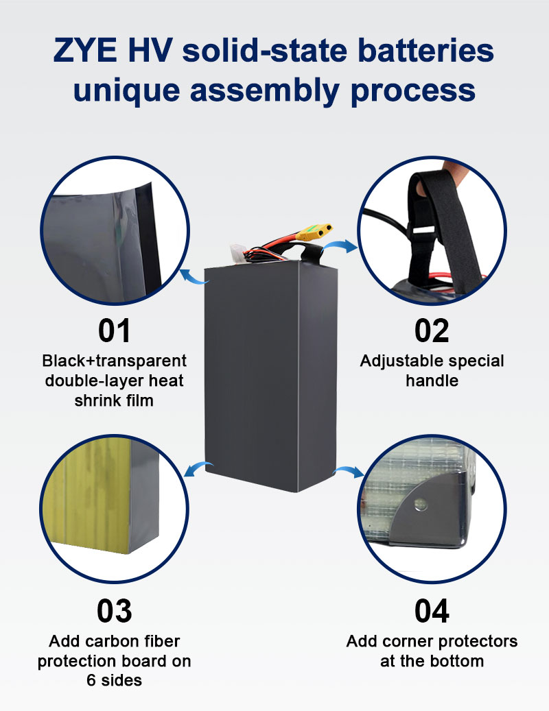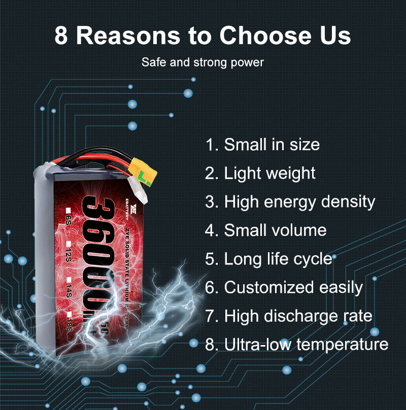 Innowacja: stale ulepszamy naszą technologię, aby zapewnić wysokowydajne, najnowocześniejsze rozwiązania, takie jakZYE precyzyjny akumulator półprzewodnikowy o dużej gęstości 6S 12S 14S 24S 88000mAh 88Ah 4,45V do drona dostawczego VTOL, zaprojektowany dla optymalnej wydajności w wymagających aplikacjach.