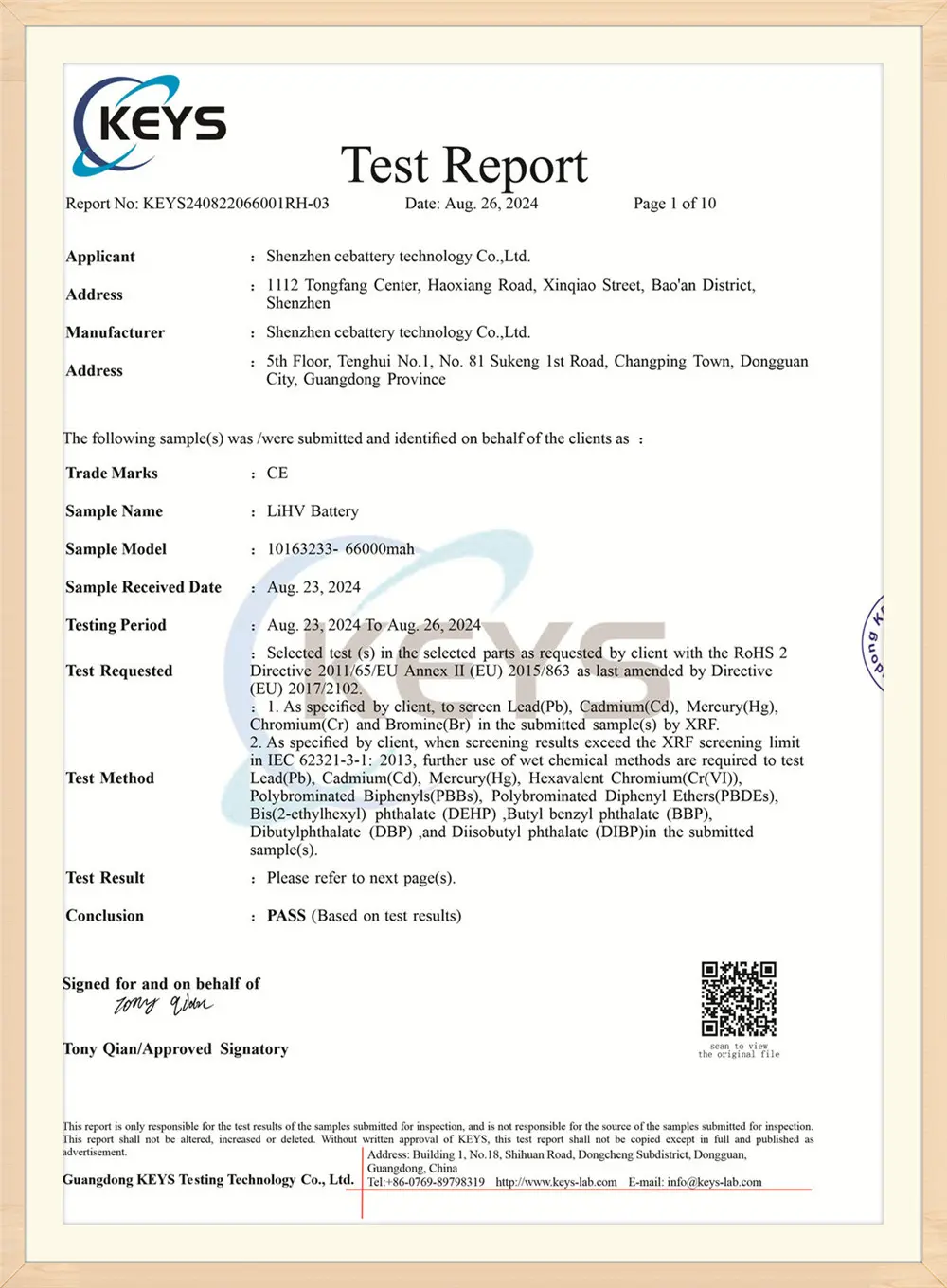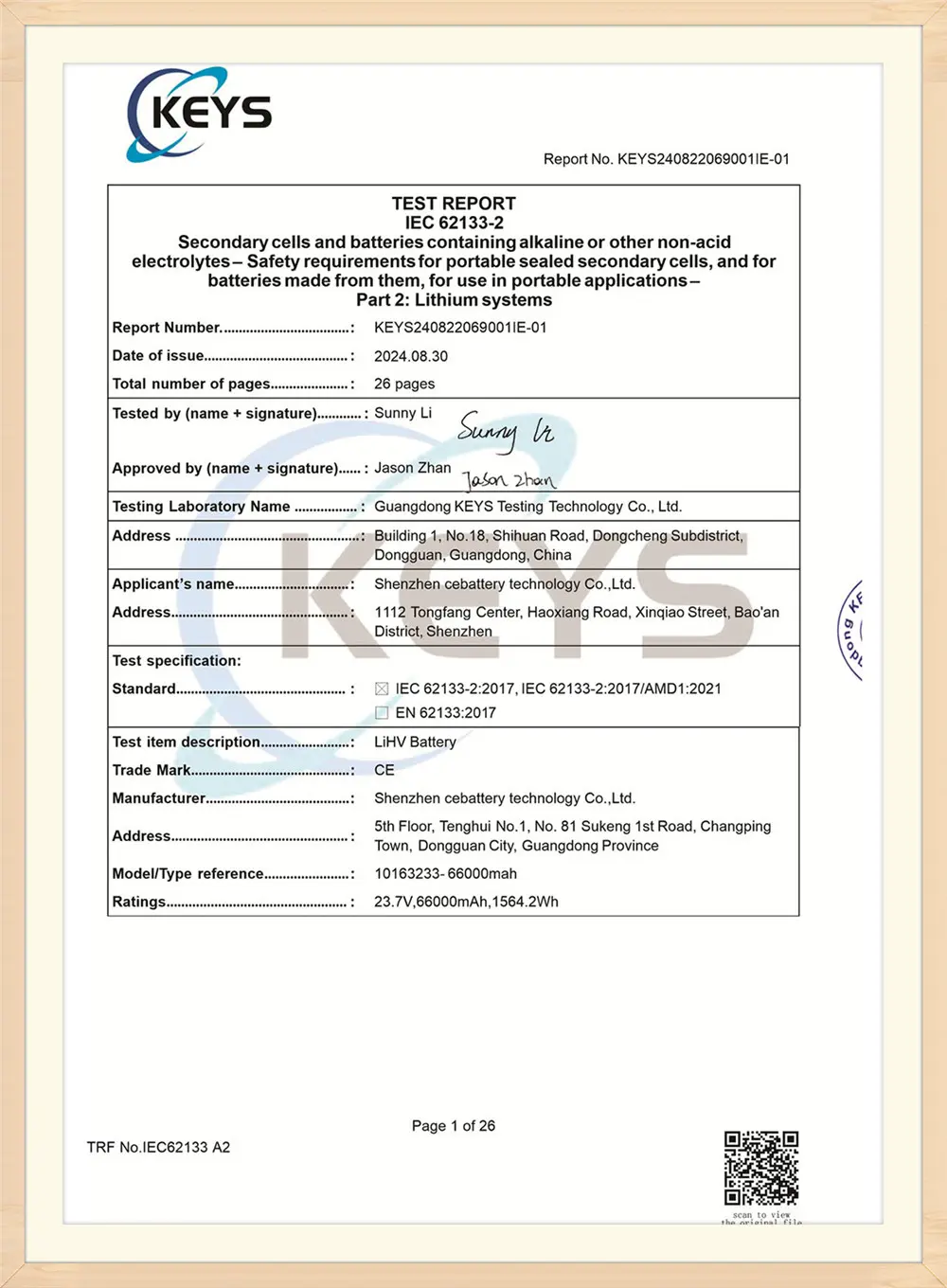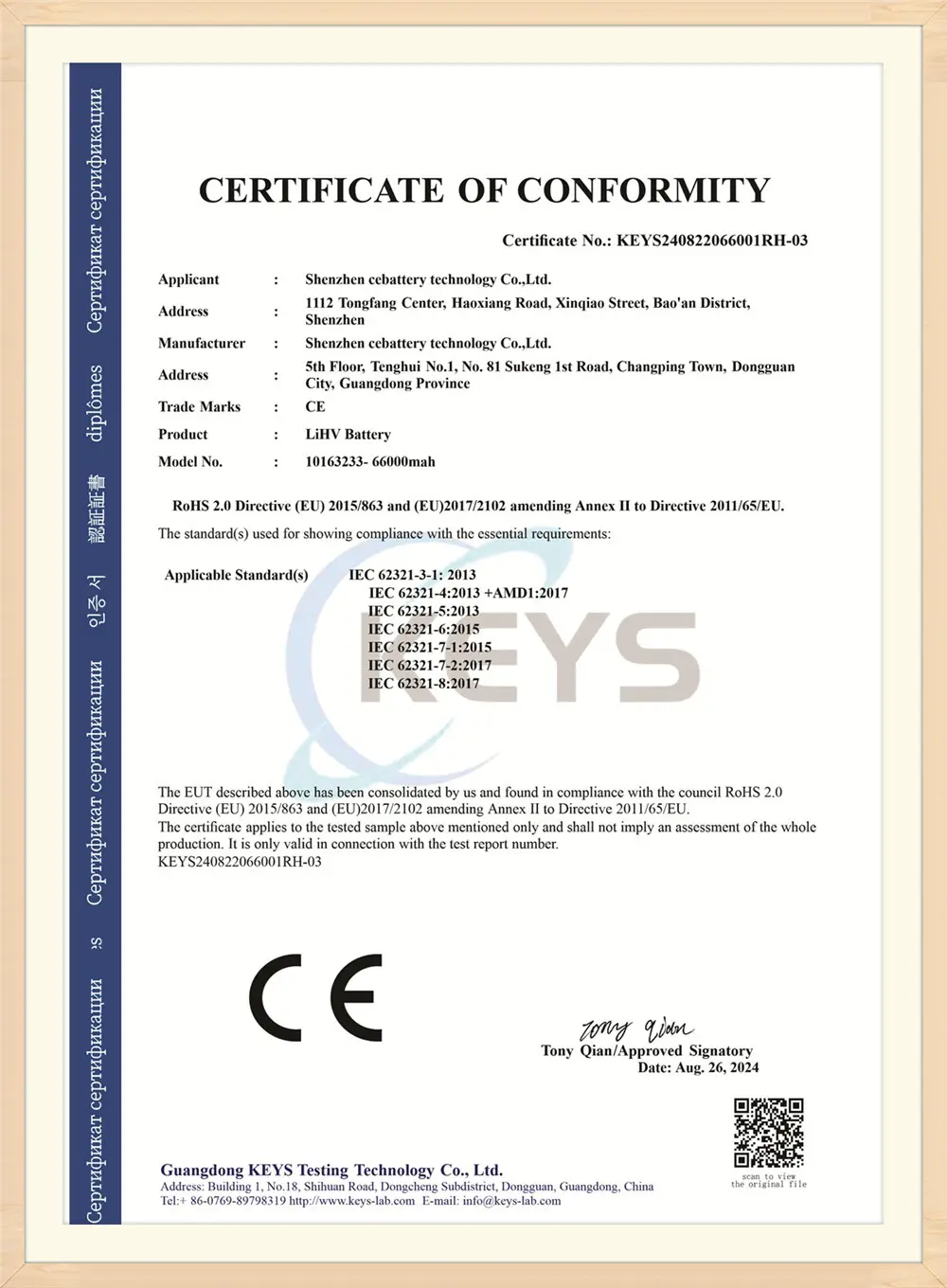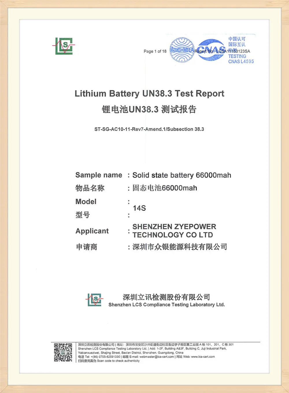 ZyeBatteyZawsze dąży do filozofii biznesowej „najpierw jakości, zorientowanej na usługi, integralności obietnic”. Aby być najlepszym i najbardziej stabilnym dostawcą baterii, zapewniamy wysokiej jakości technologię akumulatorów, a ZyeBattey uchwalił wiele certyfikatów autorytetów, takich jak ISO9001: 2015, UL, CE, FCC, ONZ, 3C itp.