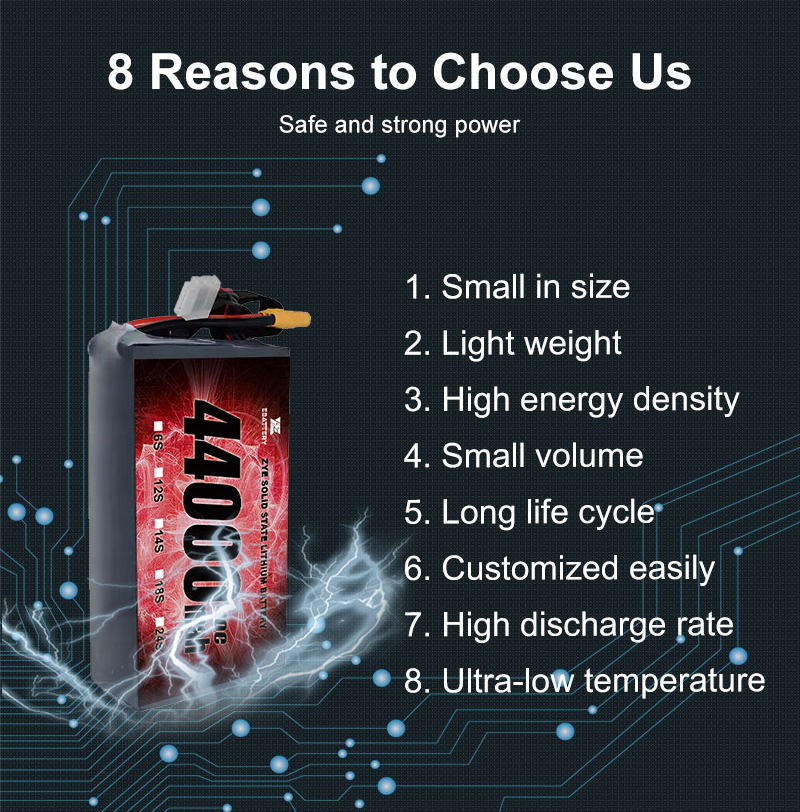 Najnowocześniejsza technologia: inwestujemy w badania i rozwój, aby zapewnić najbardziej zaawansowane rozwiązania baterii, w tym naszeHurtownia Zye 3S 4S 6S 40000 mAh 44000 mAh 44AH 40AH12S24S Stan stały Pakiet akumulator, zaprojektowany do doskonałej wydajności w ekstremalnych warunkach.