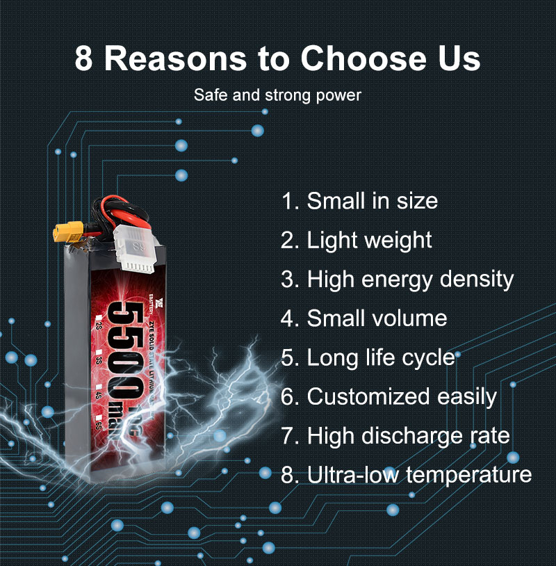 Przedstawiamy 5500 mAh HVPrzenośny bateria stałego stanuod Shenzhen Ebatery Technology Co., Ltd (Oko). Ta najnowocześniejsza bateria od lat jest podstawą w Chinach, znaną z długotrwałej żywotności baterii i stabilnej wydajności. Jako wiodący producent oferujemy tę baterię po niezrównanej cenie. Nasze zaangażowanie w jakość i innowacje zapewnia najlepszą wartość dla swojej inwestycji. Niezależnie od tego, czy potrzebujesz niezawodnego źródła zasilania dronów, hobby RC, czy magazynowania energii, bateria stałego stałego 5500 mAh jest twoim najlepszym wyborem.